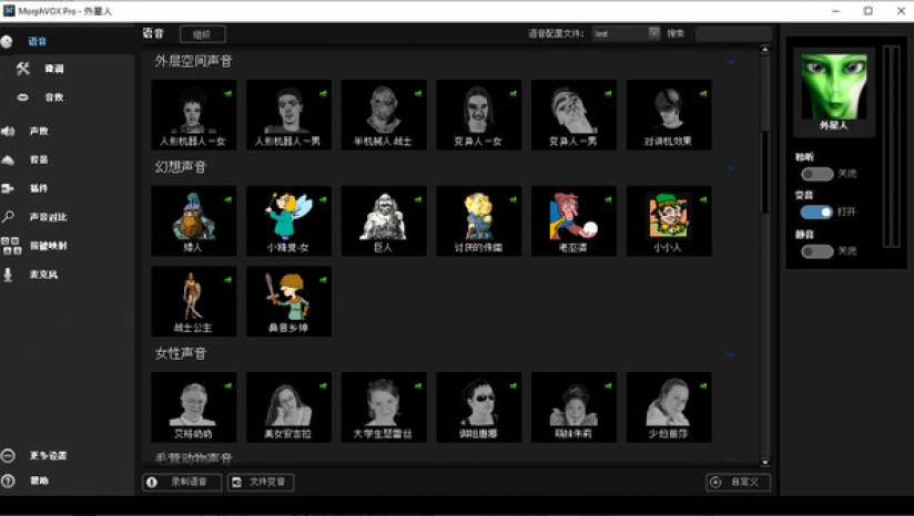 MorphVOX Pro 将在网上聊天和游戏中使你变音。它具有超高语音学习技术,背景取消和高音质特点,将变音带向全新层次。
