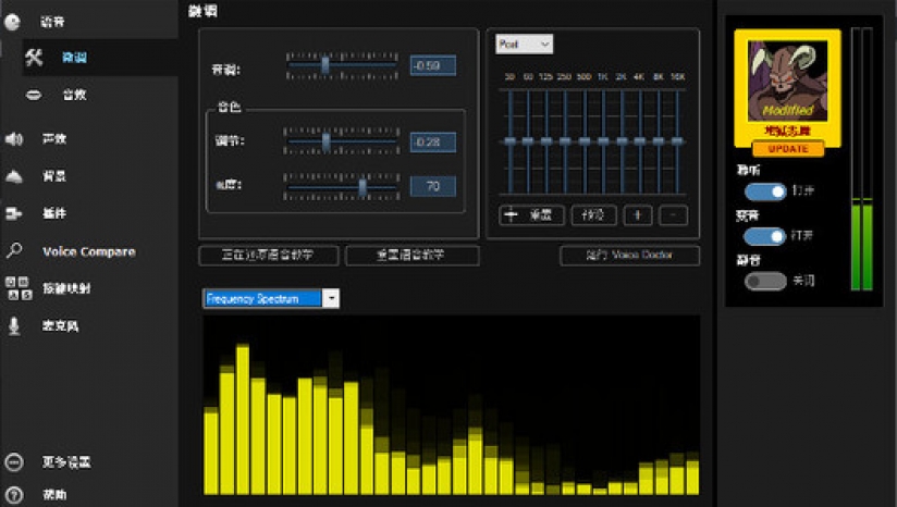 为网络游戏提供最优化服务。 使用该软件,在角色扮演中变声,为网络游戏带来乐趣。不管在游戏中你是脾气暴躁的小矮人,还是威猛的巨人,它都能让你的声音听上去符合人物角色。