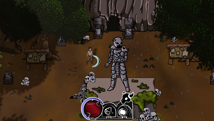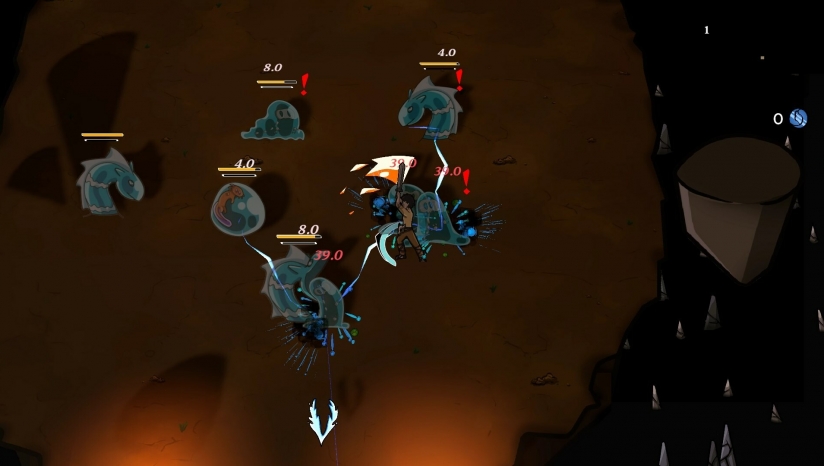 探索并爬上程序生成的山峰,寻找并击败 Boss,然后继续您的旅程。