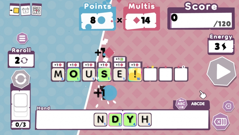 玩家通过组合随机分配的字母池拼出单词,每个字母携带独立分值,单词长度触发动态分数加成(如长单词激活高倍率乘数)。得分累积至阈值可解锁增益效果或字母属性修改器,形成资源循环。