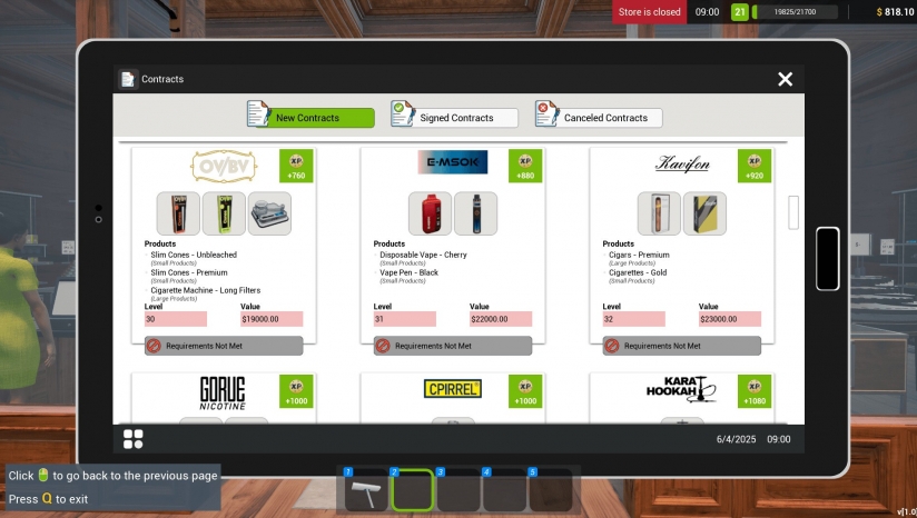 《烟店模拟器》是一款由Business Tycoon开发的第一人称模拟经营游戏。玩家将扮演烟草店老板,从零开始经营一家街边小店,通过与头部品牌签订合同、管理库存、设定产品价格等策略,逐步将其发展为大型烟草零售帝国。游戏支持最多四人合作模式,玩家可与好友分工协作,共同应对采购、销售、收银等环节,店铺内玩家越多,客流量也会相应增加。核心玩法涵盖真实的经营流程:需根据市场价格波动调整进货策略,合理摆放香烟、打火机、烟斗等50+烟草相关产品,设置足够收银台减少顾客等待时间,并处理现金、刷卡及在线订单。