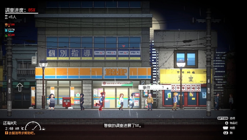 在这个相互监视的社会里,东京市民(NPC)对奇怪行为非常敏感。玩家必须在不引起市民注意的情况下搜寻垃圾箱,否则会引起市民的不适,这将有助于警方的调查。