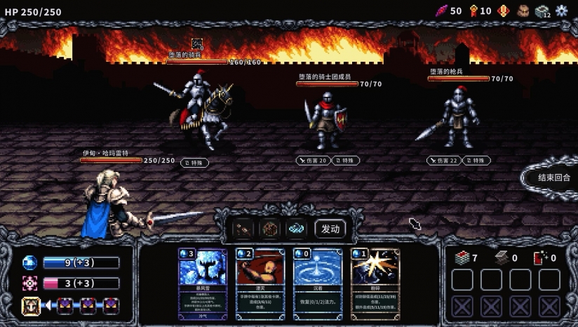 玩家需动态组合300余种卡牌与圣物,构建专属牌库。每场战斗围绕“觉醒槽位”展开:卡牌威力随激活槽位数量浮动,且可消耗“专注”资源主动激活槽位,策略性地调整战局。