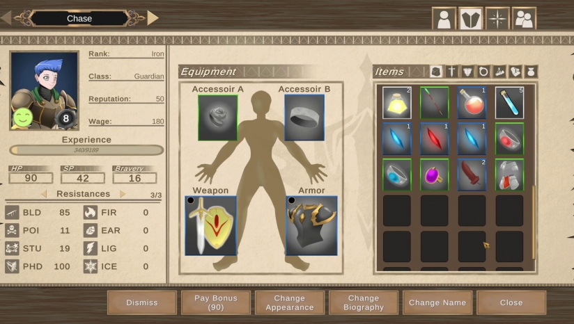 训练冒险者升级职业、解锁技能树;管理其情绪与人际关系,这些因素将影响战斗表现和剧情发展。