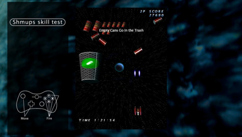 《射击技能测试(Shmups Skill Test)》是一款由TRIANGLE SERVICE制作KOMODO发行的第三人称射击游戏。本作可让玩家体验各种硬派与搞笑游戏,如:持续击破战车、保护地球不受陨石威胁、闪避楼群,以及将空罐丢进垃圾桶等,以此判定玩家的射击游戏实力。 Steam版追加了“在线玩家年龄”功能,可和其他玩家的成绩进行比较,计算出玩家实力! 除街机版备受好评的2人对战外,本作还追加了支持4人对战的新模式!(仅可脱机对战) 此外还收录了多款支持“挑战模式”的Steam版原创高难度游戏。