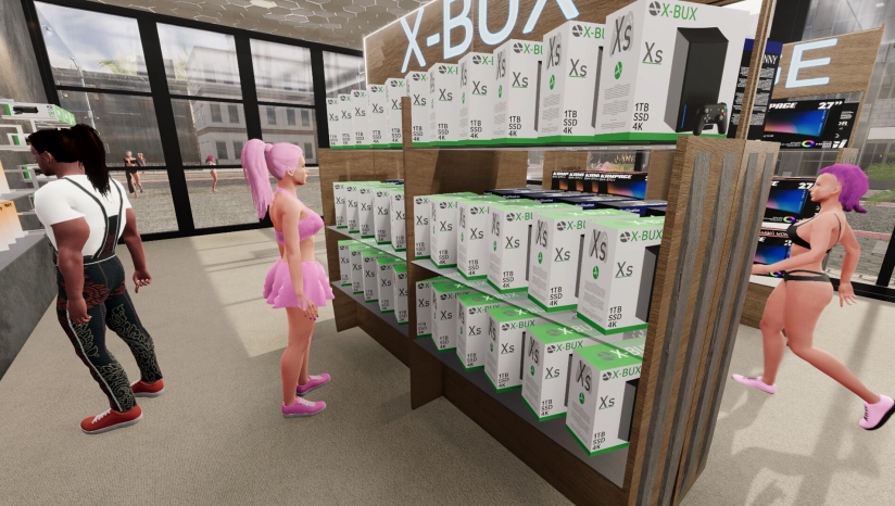 顾客在店内的行走路径、产品试用动画及昼夜循环系统,营造生动商业氛围。