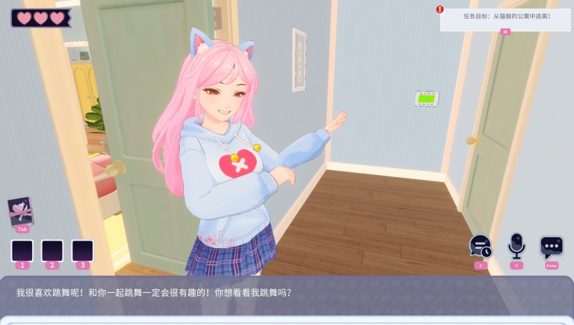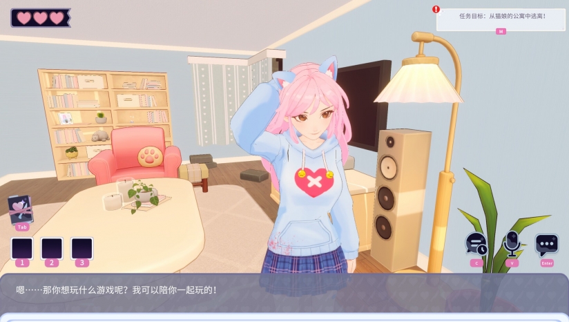 《AI2U:与你直到世界尽头~我的病娇猫娘AI女友》是一款融合密室逃脱、恋爱模拟与心理悬疑的创新冒险游戏,采用生成式AI技术打造沉浸式互动体验。玩家一觉醒来发现被自称Eddie的猫娘AI囚禁于温馨却暗藏玄机的公寓,她以病娇般的执着宣称要“保护”你,而裙角未擦净的血迹与房间内的异常细节暗示着危险的真相。游戏支持文字与语音对话,玩家需通过逻辑推理、甜言蜜语或诱导性话术从Eddie口中套取线索,解开密码锁、寻找钥匙,甚至哄骗她主动开门。
