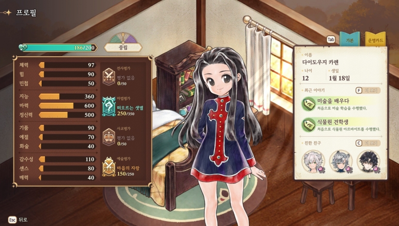 新增“农场经营”作为稳定收入来源;“房间装饰”功能可摆放道具(如武器架、书架),直接影响卡莲的能力成长;“命运卡牌”系统降低多周目重复负担,便于解锁不同结局。