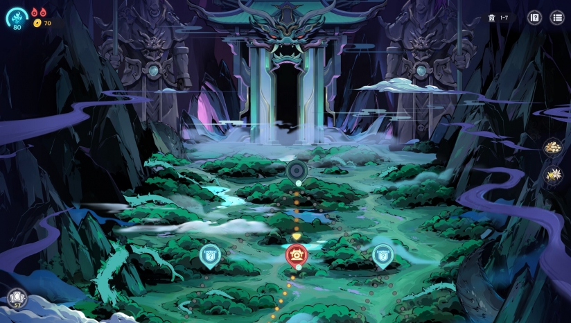 采用“爬塔”式地图推进,随机事件(如孟婆奶茶店)影响后续战局,每关Boss需针对性策略应对。
