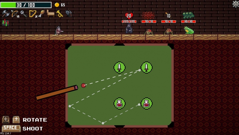 午夜桌球是一款受《哥布林弹球》和台球启发的回合制肉鸽游戏。你的目标是在台球桌上战略性地弹射球体,触发各种后续效果。