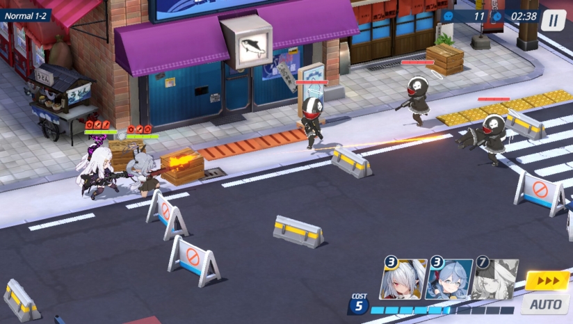 除战斗外,玩家需经营咖啡厅获取资源,通过“MomoTalk”系统与学生互动解锁剧情,制造道具强化角色。