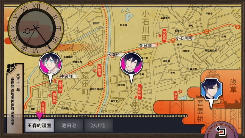 《旧书店街的桥姬々满天》是BL游戏《旧书店街的桥姬》的官方数字设定集与补充读本,延续了原作大正11年(1922年)东京神保町的奇幻悬疑舞台。玩家将扮演主人公玉森——一位沉迷幻想小说却屡次落榜的20岁青年,在好友水上离奇自杀后陷入三日循环的雨季时空。为拯救相继遭遇不测的同乡挚友(包括毒舌天才医学生川濑、军人花泽等),玉森需穿梭于现实与幻觉交织的旧书店街,揭开笼罩在“梅钵堂”地下室的神秘能面男与冰川博士等角色背后的死亡谜团。