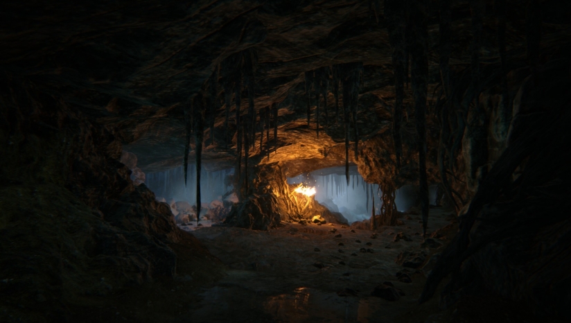 场景细节丰富:学生遗留的营地、岩壁铭文、雪地血迹等,均以写实风格渲染悬疑感。