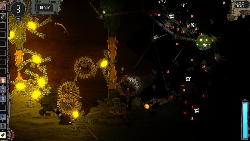 收集矿物与植物资源,自定义融合炮塔系统,建造无人机工厂、迫击炮等防御工事,抵御动态生态中的奇异生物。