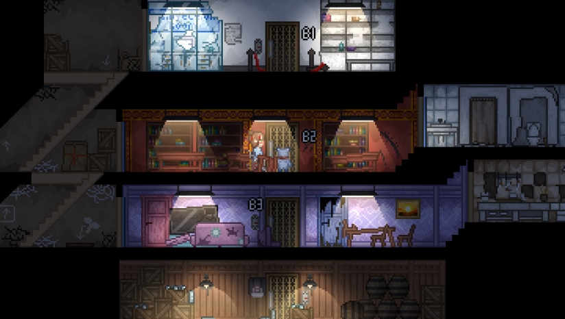 吉尔的毛绒质感、拾伍司的机械投影等像素动画细腻;环境交互元素(如闪烁的灯光、日记涂鸦)通过高对比度色彩突出,强化探索沉浸感。