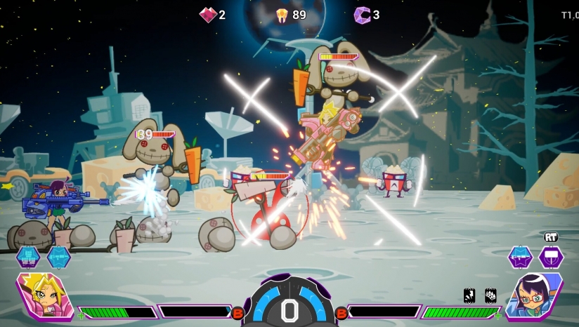 双人模式可在每次回到实验室时重新调整搭档组合;单人模式则由电脑伙伴协助作战,并可在游戏中随时切换主控角色。