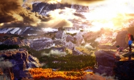 采用高饱和色彩与低多边形融合的美术风格,呈现暮光峡谷与云端遗迹等梦幻景观。风吹植被的物理效果、雪地实时脚印等细节增强沉浸感,吉他主导的配乐与狂风呼啸等环境音效塑造苍茫氛围。需注意复杂地形可能出现帧率波动问题。