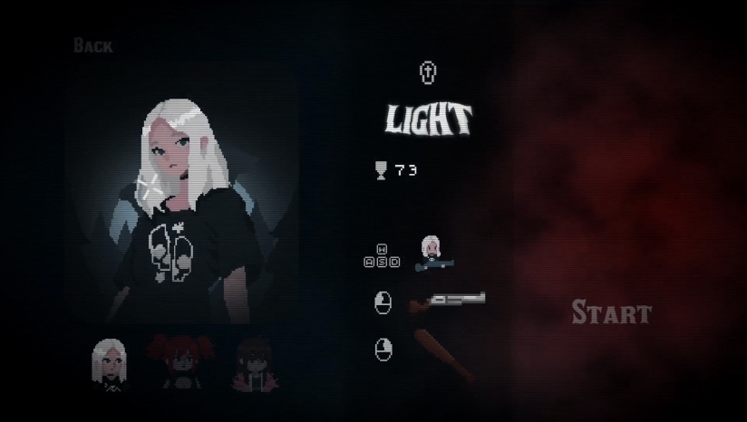 Ligth: 使用可一次发射三发弹丸的霰弹枪,能够贯穿敌人。她还携带一根棒球棒,可用于击退敌人的弹幕。