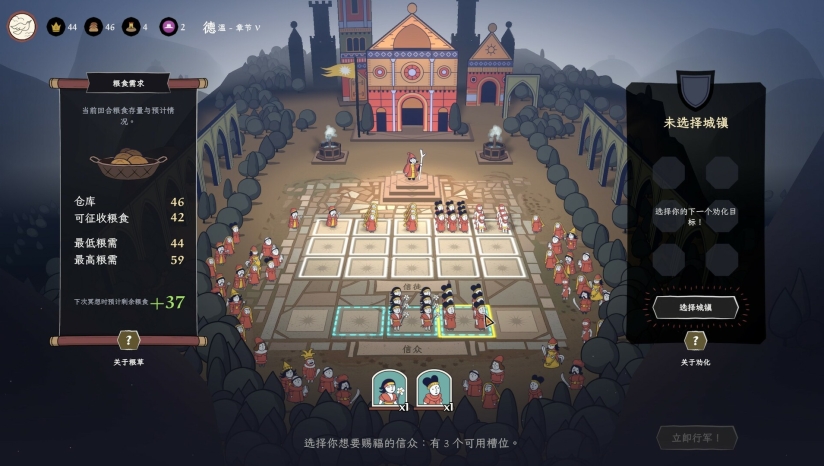 玩家需选择教义核心(道德、文化、宗教方向),通过随机词条构筑独特教义体系,影响追随者类型、地区收入及传教策略。