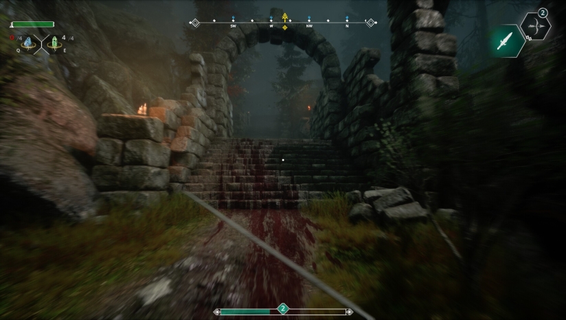 结合剑术、法术与弓箭三种攻击方式。剑术采用第一人称创新连击机制,法术可麻痹、灼烧或困住敌人,弓箭则用于狙击弱点或摧毁“黑暗之眼”(如阻挡道路的“阻挡者之眼”或赋予敌人无敌的“水蛭之眼”)。