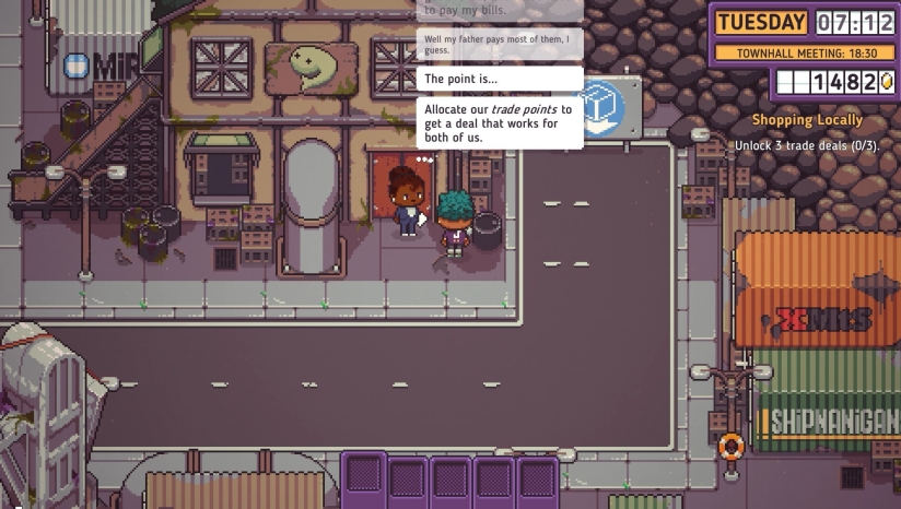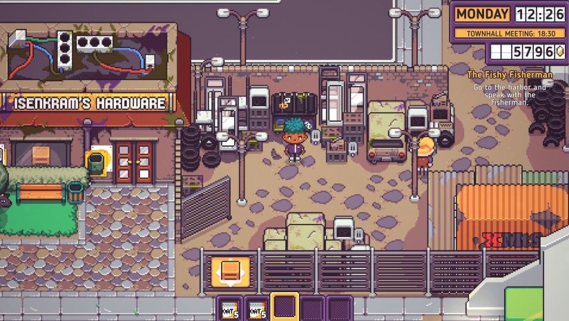 探索小镇地图,与居民建立友谊或竞争关系,触发支线任务(如修复社区中心、揭露镇长腐败证据)。