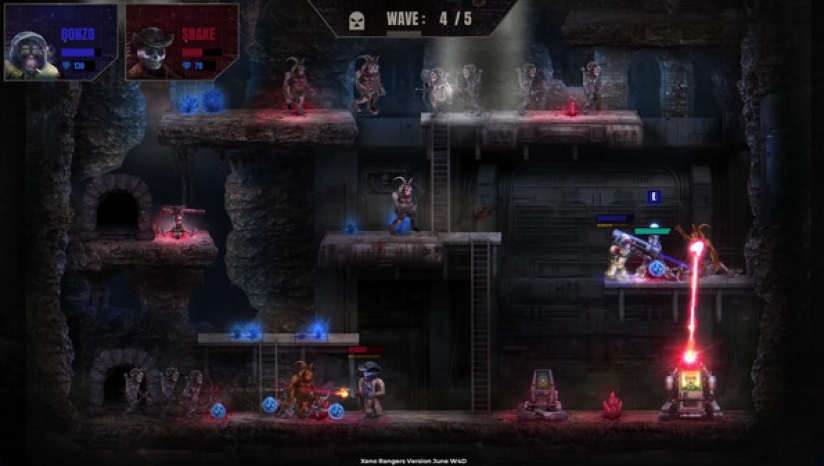 简中《异度游骑兵(Xeno Rangers)》是一款由9000 Legends开发制作并发行的动作游戏。在这款合作平台防御游戏中,你需要通过合理建造基地与防御,抵御蜂拥而来的敌人,并利用沿途获得且升级的武器和道具来保护你的指挥中心。