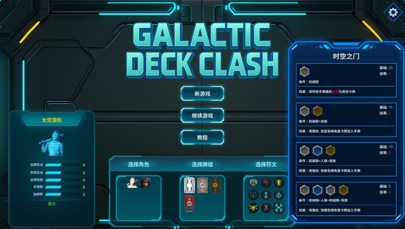 《银河卡牌乱斗》(Galactic Deck Clash)是一款以太空星际为背景的牌组构建类 Roguelike 游戏。由Froststone Game开发制作,未来将上线steam平台。你将收集海量卡牌,操控不同种族,探索千变万化的卡牌组合。更独特的是,你可以自由替换卡牌效果,并搭配装备、符文等特殊道具,持续强化自己,在一次次对局中挑战强敌、突破极限。