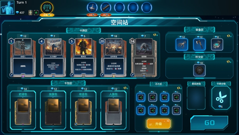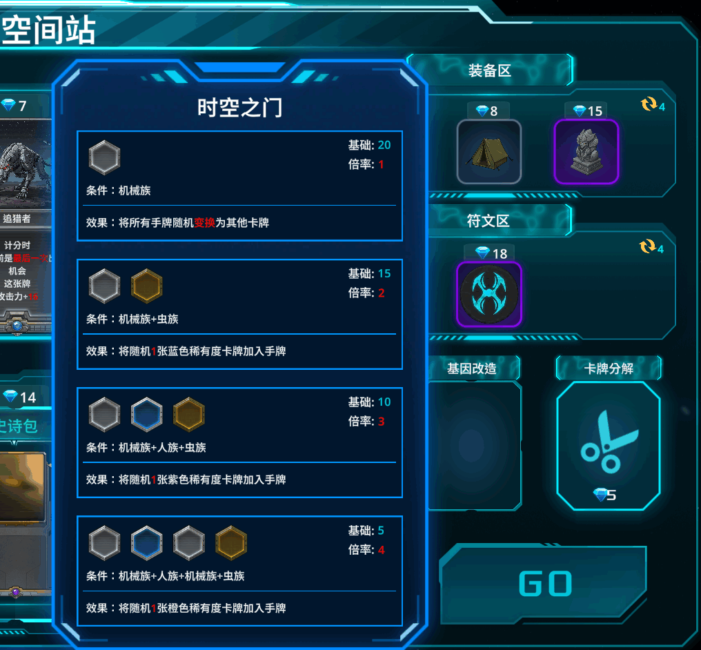 在空间站,你可以购买卡牌,装备、符文、或者分解卡牌,甚至可以升级卡牌!
