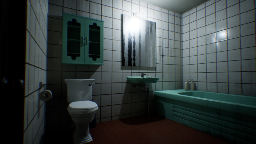 场景在现实与幻觉间无缝切换,如墙壁渗血、家具扭曲变形,配合镜头晃动模拟精神紊乱的视角。