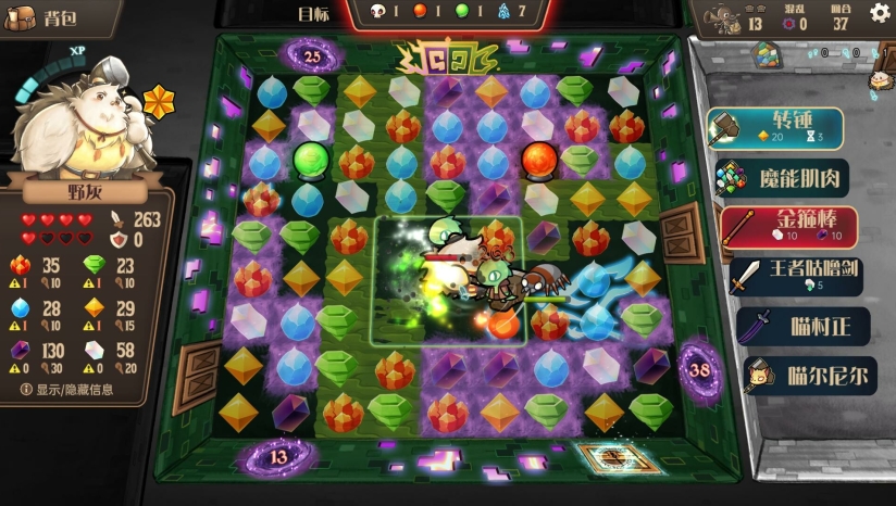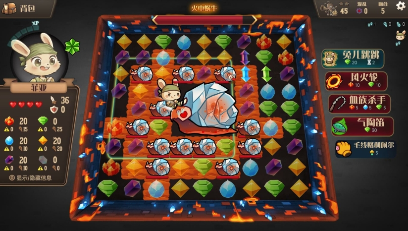 超越传统三消,玩家可操纵六种消除能力(如时间暂停、百搭魔能、爆炸消除),并利用环境元素(如泥土+水生成泥沼陷阱)制造连锁反应。