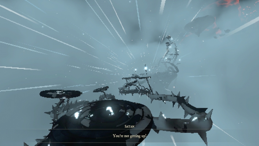 地狱设定融入荒诞元素,如踢飞撒旦脑袋的终极目标,颠覆传统英雄叙事,突出无厘头暴力美学。