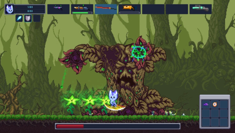 在这个迷人的Metroidvania游戏中,你将扮演一只可爱的小猫,完成寻找42号星球灵魂拯救地球的任务。在这个迷人的游戏中,与敌人和老板战斗,解决难题,探索关卡。