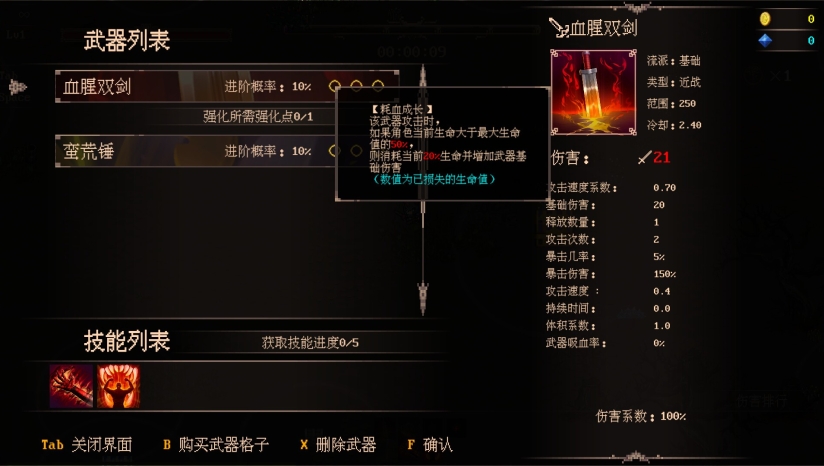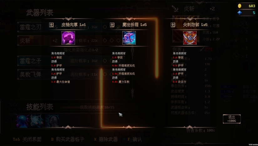 局外可解锁天赋树,例如“宝箱必出稀有武器”或“开局携带燃烧手雷”,助力后续冒险。