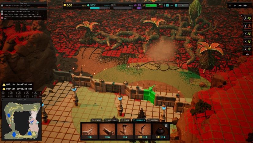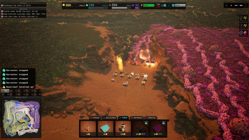 您需要建设能源网络,部署采集车,提炼矿石并将其送往轨道换取信用币。同时还要筑起围墙和炮塔保卫基地,部署坦克和火炮将星萼击退,遏止它们的长势。