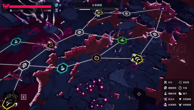 游戏采用色彩鲜明的美术风格,将生物细胞结构转化为赛博朋克化的战场场景,辅以粒子特效渲染的弹幕攻击。战斗演出尤为华丽——弹反瞬间触发炫目的光效与慢镜特写,配合金属质感的打击音效,营造出“刀尖舞蹈”般的视听沉浸感。场景设计融合了微观世界的奇异感(如放大化的病原体环境)与科幻元素,形成独特的视觉辨识度。