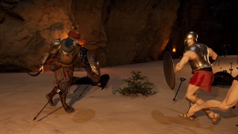 游戏采用虚幻引擎5开发,以写实风格重现古希腊的壮丽景观:从雅典卫城的残垣断壁到爱琴海的波光岛屿,细节丰富的地理环境随昼夜与天气动态变化。战场上,千人同屏的军团鏖战搭配粒子特效(如箭雨齐发、攻城火攻)营造出电影级战争场面。角色与建筑模型高度精细化,例如铠甲纹路、营地炊烟等均增强了沉浸感。