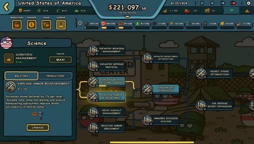 在Countryballs: Power Protocol中,时间就是金钱——字面意义上的。你的收入会随着时间不断增长。升级工业、发展贸易、管理全球资产,助你扩展版图。你控制的国家越多,经济增长越快。明智的决策将带来更大的统治力。