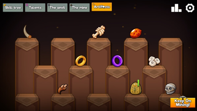 矿井!当你解锁矿井后,它会自动挖矿并立即锻造成金属条。矿井是 Keep on Mining! 的放置玩法核心!