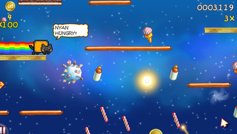《Nyan Cat: Lost In Space》是一款由isTom Games Kft.开发制作并发行的休闲益智类游戏。与人类历史上最著名的飞行猫玩耍。喝牛奶,吃冰淇淋,收集硬币,购买华丽的道具,像超级英雄一样飞行(对不起……超级卫星),跳上蛋糕做的平台,避开愤怒的狗,发现无限的空间。