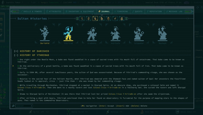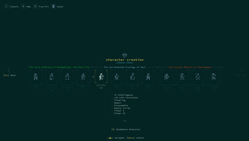 《卡德洞窟》是一个规模宏大的项目,自2007年开发至今,已逾十五载。它最初来自联合制作人 Jason Grinblat 和 Brian Bucklew 打造科学奇幻风格Roguelike的梦想,游戏的首个测试版于2010年发布。此后,更多贡献者的加入为项目注入了活力——他们协助添加了视觉效果、音效、原创配乐、新的用户界面、新的游戏系统、新的背景设定以及超过游戏现有体量半壁江山的新增内容。如今,《卡德洞窟》已成长为一片涌现式叙事的狂野花园,作者精心创作的手写剧情在丰富的物理、社会与历史模拟系统中蜿蜒穿行。最终造就的游戏世界既包含手工雕琢,又融合程序生成,其鲜活程度在游戏界堪称凤毛麟角。