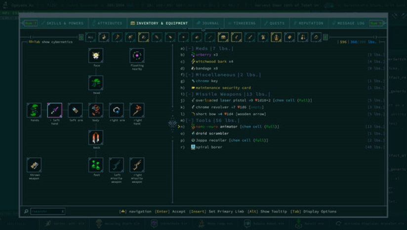 数十种赛博植入体(寻宝时还会发现更多) - 夜视,半透明皮肤,碳化拳,弹簧肌腱,等等……