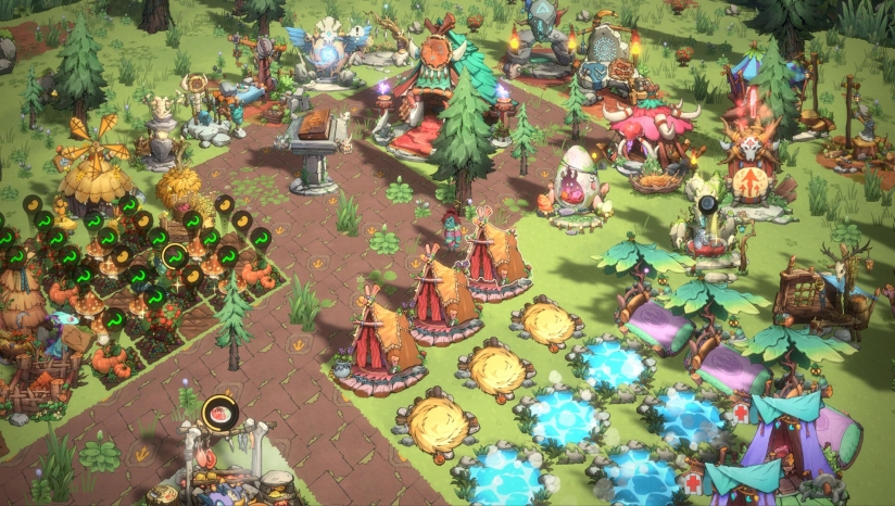 游戏采用“沙盒建造+肉鸽地牢”的复合玩法,玩家可自由切换“农场主”与“驯龙者”的双重身份。在家园系统中,玩家可建造40余种功能性建筑,包括孵化室、交配室、农田等,通过种植、养殖和科研提升资源产出效率。迪诺兽不仅承担搬运、种植等劳作,还能通过交配繁殖培育携带双亲特性的后代,形成“孵化-培养-优化”的养成循环。在地牢探险中,玩家以“一人三龙”小队形式出征,骑乘迪诺兽发射弹幕,搭配另外两只随从的技能组合战斗。肉鸽元素体现在随机生成的关卡布局、31种图腾与70种遗物的策略组合上——例如散射图腾可将子弹分裂为多重弹道,而召唤物契约图腾能强化召唤兽的生存能力。每次闯关后,玩家可利用获得的资源升级家园设施,形成“战斗-资源-成长”的正向反馈。