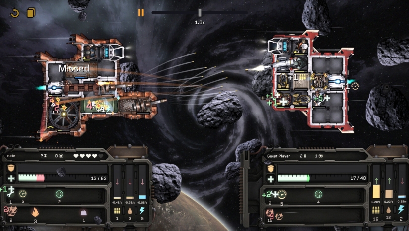 游戏中的战斗将自动进行,但你可以选择何时投降认输。在浏览商店还是呼呼大睡的时候,你的飞船将会持续作战,但不会自动为你收集资源。你可以储存设计方案,之后随时调用以面对其他玩家,但你将与起飞时的飞船同生共死。