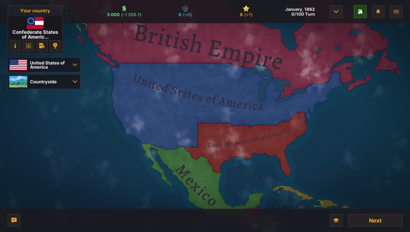 选择六大政治制度(如神权统治、共产主义),颁布政策影响国家发展。