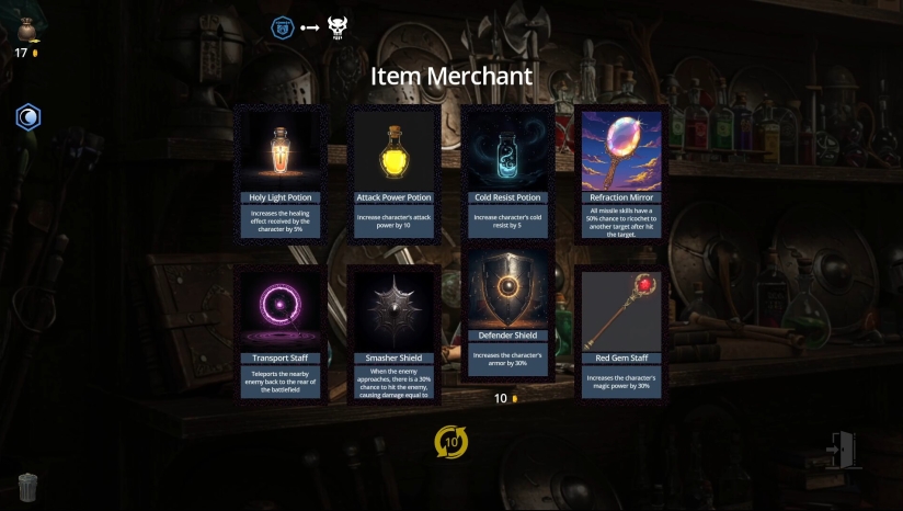 为你的英雄配备强大的武器、盔甲和药剂,让他们在战斗中占据优势。每件装备都有独特的效果,能够改变战斗的走向——无论是通过 brute 力量、战术控制还是巧妙的诡计。