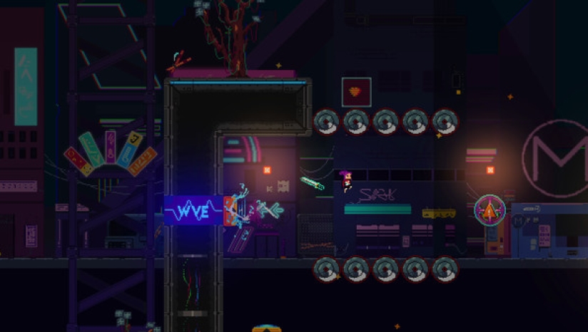 女性主角像素图形赛博朋克硬核独立复古跑酷横向滚屏游戏语言: