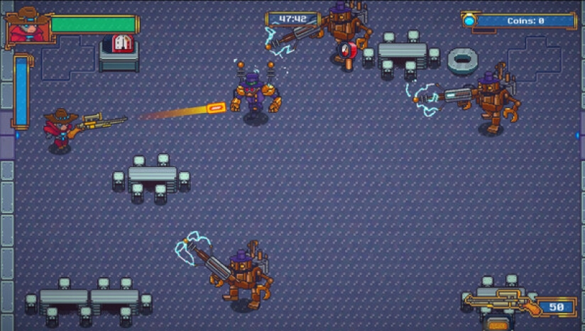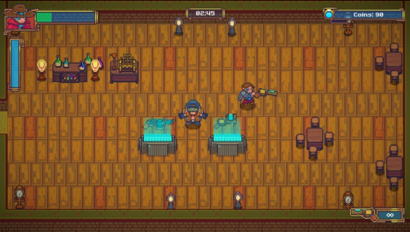 随着电控技术的发展,狂野西部也益发狂野了,接下来你的任务是消灭肆虐的匪帮,因为他们正在利用这种技术危害诚实而勤劳的当地人!你将扮演一位装备机械臂和大量增强型武器的蒸汽朋克枪手。《The Legend of Cyber Cowboy》是一款自上而下的双摇杆射击游戏,以华丽的像素艺术风格呈现。