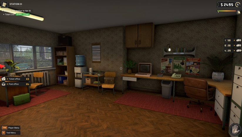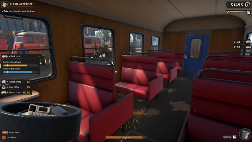 除了观察过往的旅客列车,您还可以通过在车厢内执行清洁服务任务赚取额外的现金。你可以跳过这些任务,但随着时间的推移,你的权限会增加到更负责任的角色。