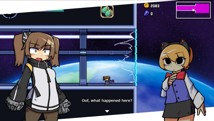 采用精致2D像素画面,角色设计兼具可爱与科幻感(如劳里的机械义肢细节),场景涵盖零重力走廊、离心农场等多样太空站结构。