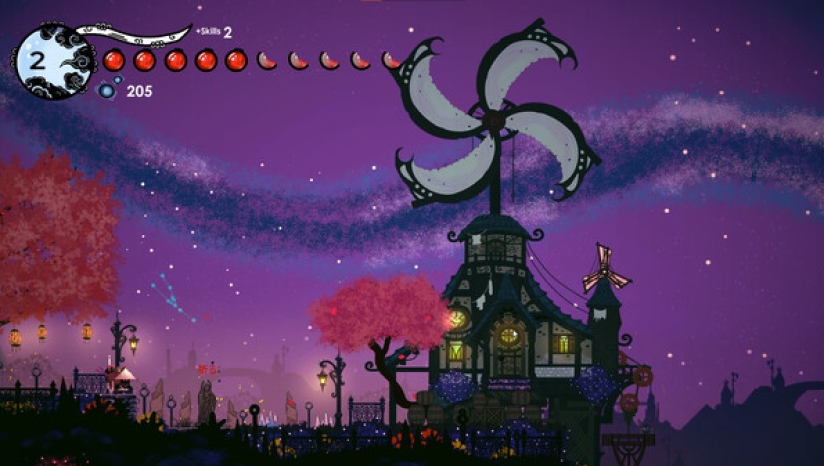 在冒险中升级,用灵魂换取经验,并用更多的健康球升级你的角色